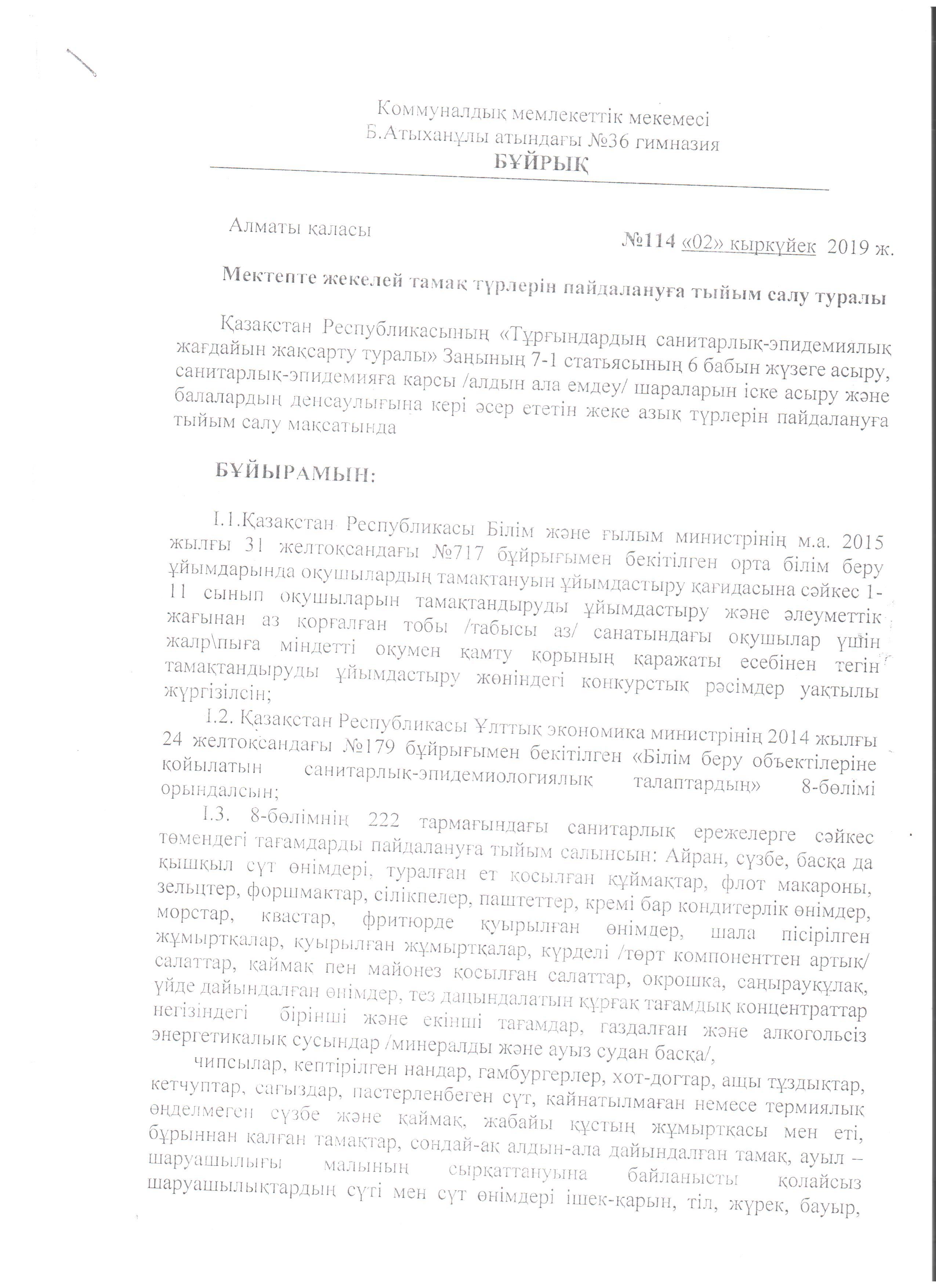 Тамақтандырудың ұйымдастыру жұмыс жоспары 2024